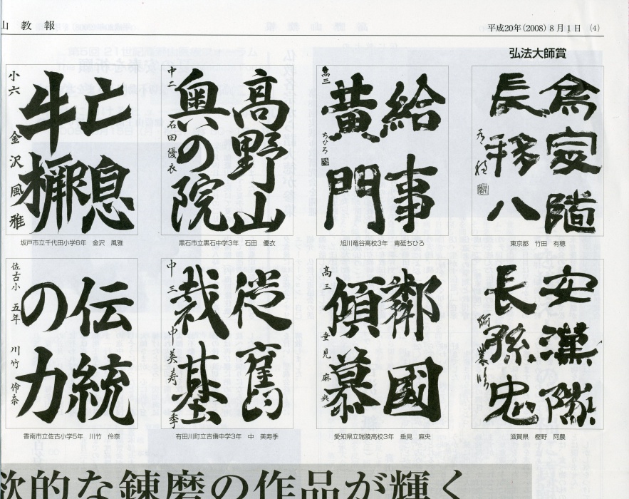 2005年で40回を重ねる、由緒ある高野山競書大会での最優秀賞です。